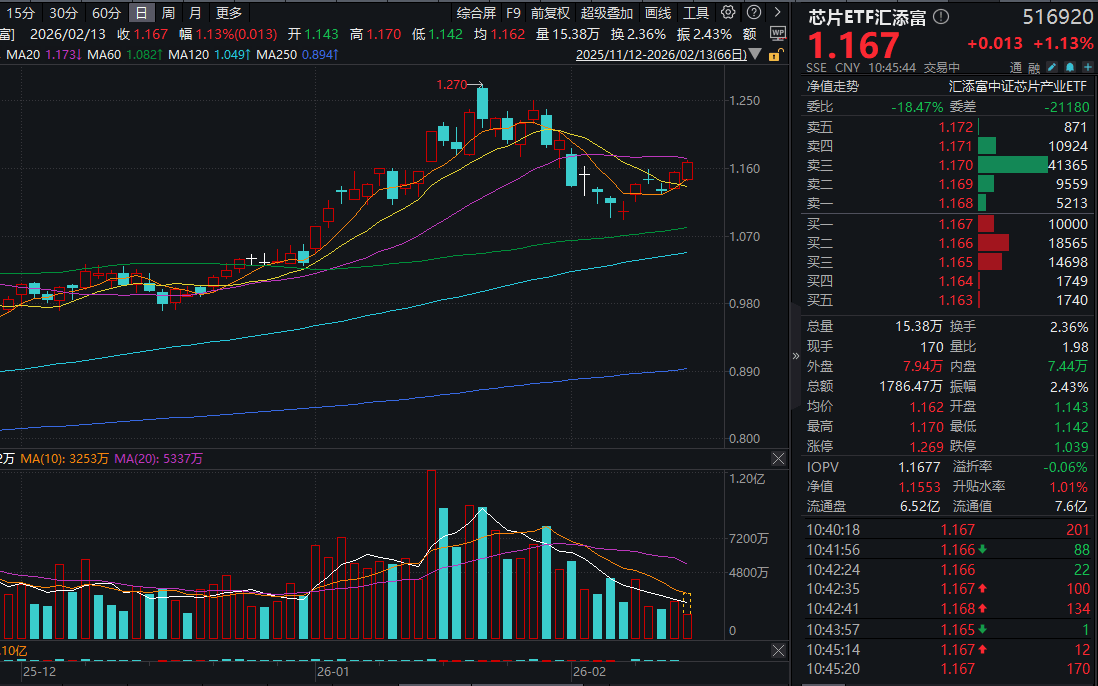 今日,芯片板块盘初大幅拉升,全市场费率最低档的芯片ETF汇添富(516920)放量涨超1%,盘中成交额已超1700万元!