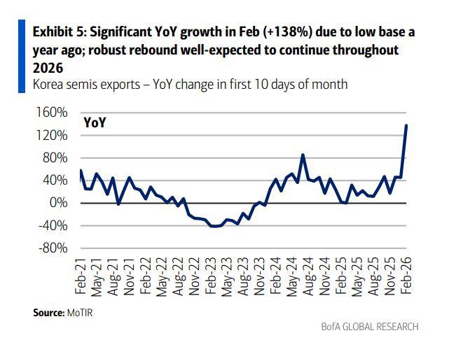 数据不会说谎。台湾地区1月份的销售数据表现强劲,南亚科技、威刚(ADATA)、创见(Transcend)和群联(Phison)等厂商的月度销售额环比增长超过20%,同比更是翻倍。韩国2月前10天的半导体出口额也同比激增138%。